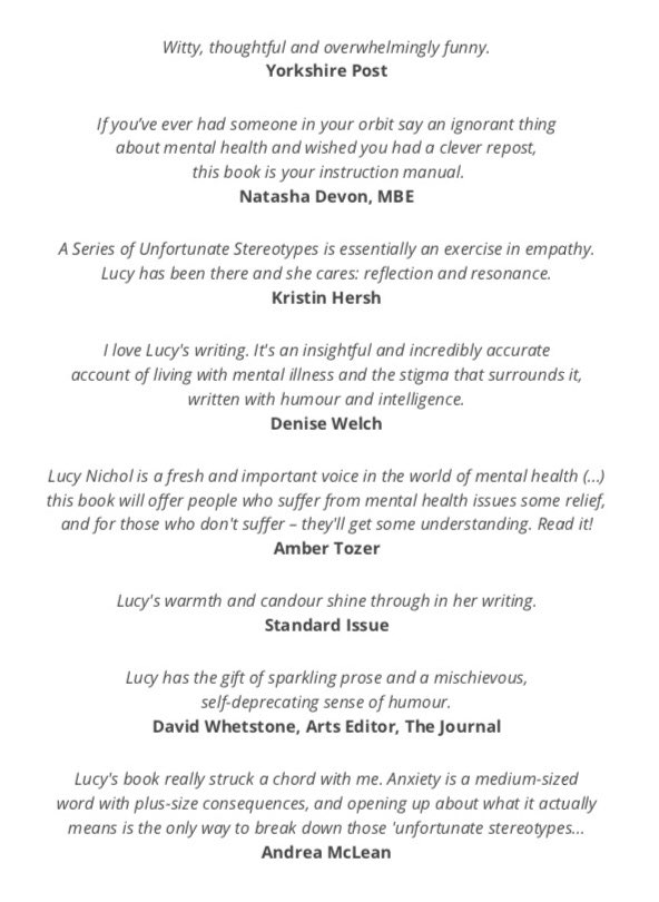 To mark Mental Health Awareness Week (18th – 24th May – which also happens to include my birthday – whoop!) my publisher, Trigger, has uploaded a special e-book discount on Amazon for my book, A Series of Unfortunate Stereotypes.